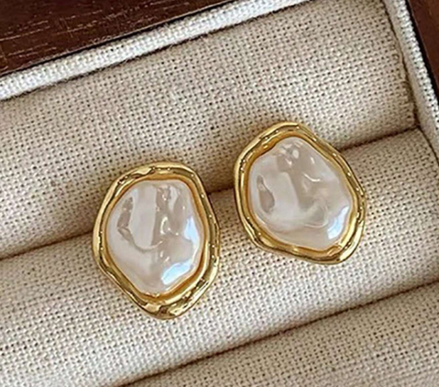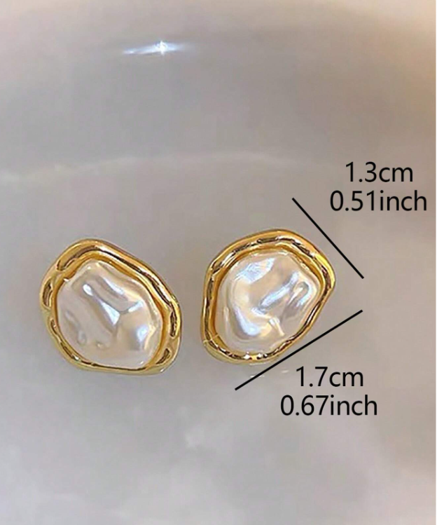 1pair French Asymmetrical Geometric Fashionable Simple Sweet Personalized Faux Pearl Stud Earrings For Women, Daily Wear