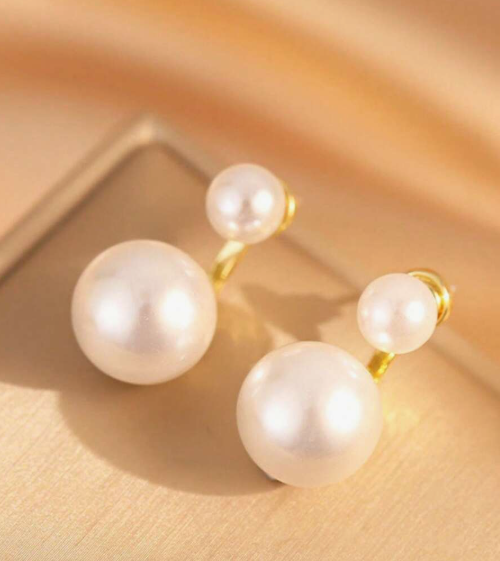 1pair French Luxurious Pearl Stud Earrings Women, Minimalist High-End Design Gift Earrings Suitable For Ladies, Friends